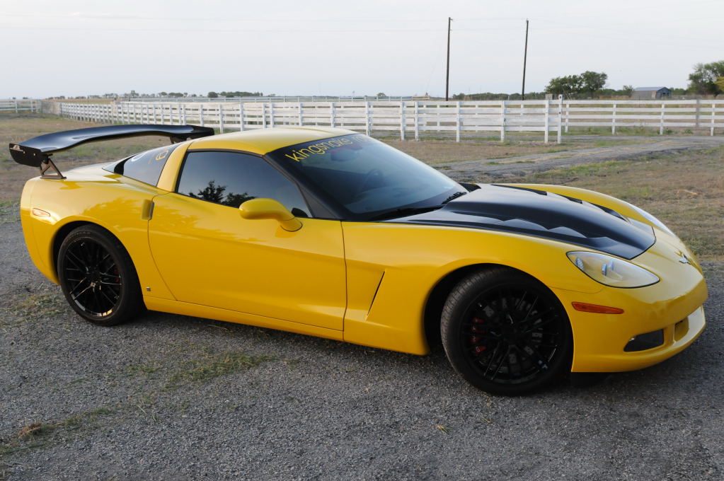 Description: kingsnake racing c6.k after installation of CF wing, CF hood and ZR1 replica wheels, Austin, Texas