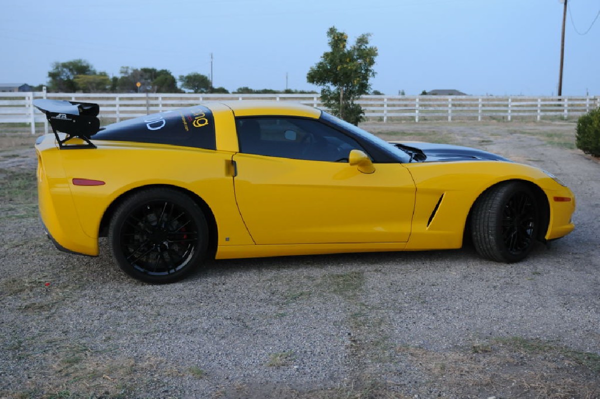 Description: kingsnake racing c6.k after installation of CF wing, CF hood and ZR1 replica wheels, Austin, Texas
