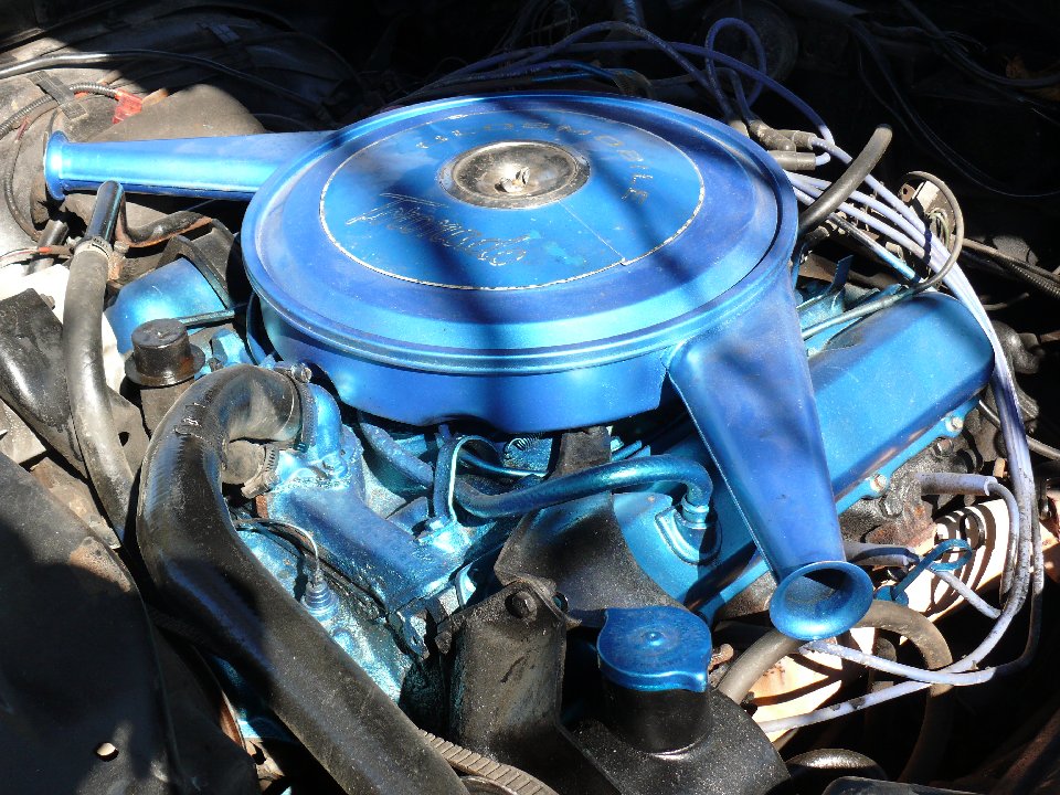 Description: Ultra High compression V8 Rocket pushing 385-400hp stock, engine and breather usually came stock blue..I repainted it a more metallic blue.