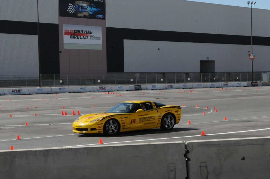 Description: Bob Bondurant instructors take SEMA participants around SEMA MotorTrend Proving Ground in C6 Corvettes Photos from SEMA Convention 2009