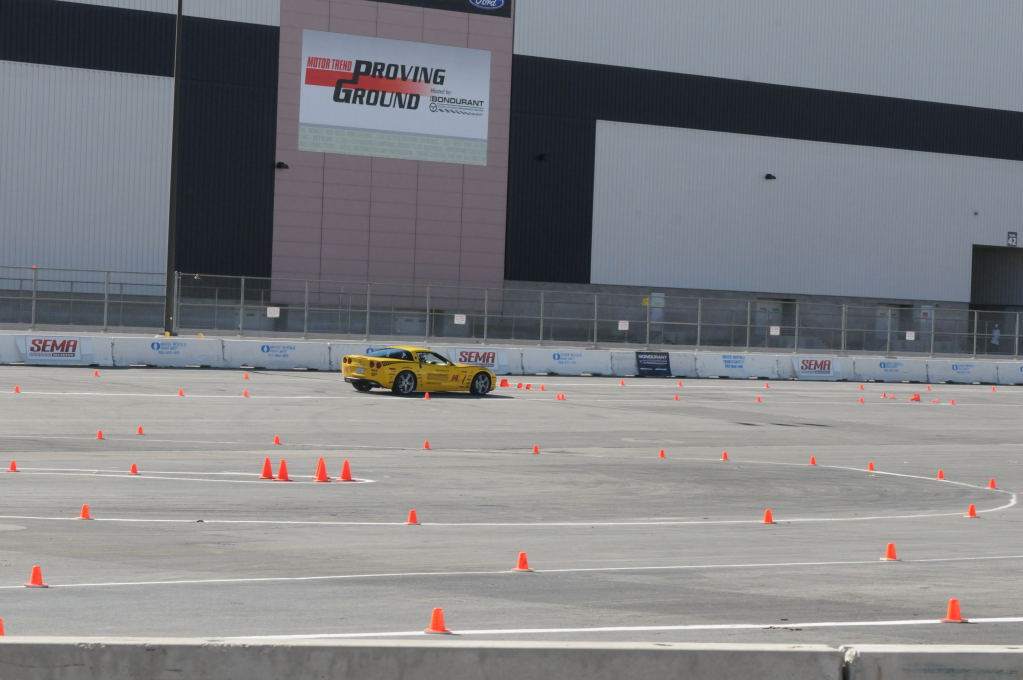 Description: Bob Bondurant instructors take SEMA participants around SEMA MotorTrend Proving Ground in C6 Corvettes Photos from SEMA Convention 2009