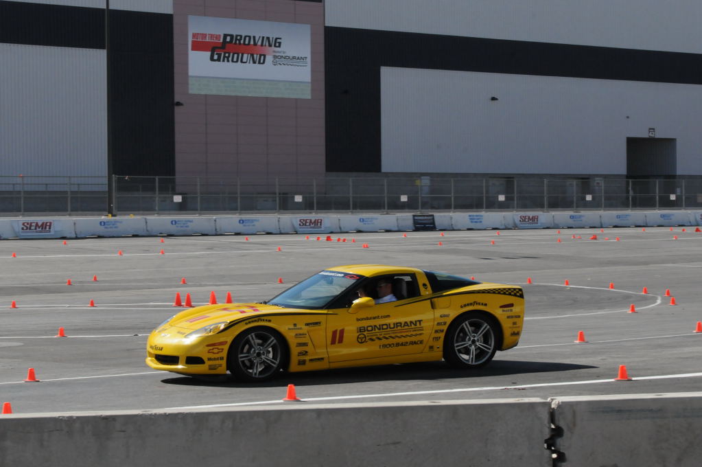 Description: Bob Bondurant instructors take SEMA participants around SEMA MotorTrend Proving Ground in C6 Corvettes Photos from SEMA Convention 2009