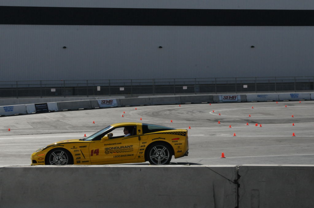 Description: Bob Bondurant instructors take SEMA participants around SEMA MotorTrend Proving Ground in C6 Corvettes Photos from SEMA Convention 2009