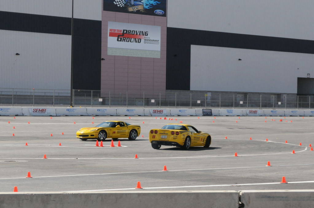 Description: Bob Bondurant instructors take SEMA participants around SEMA MotorTrend Proving Ground in C6 Corvettes Photos from SEMA Convention 2009