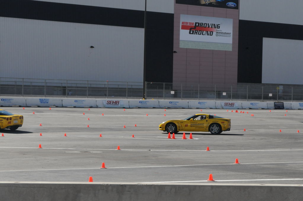 Description: Bob Bondurant instructors take SEMA participants around SEMA MotorTrend Proving Ground in C6 Corvettes Photos from SEMA Convention 2009