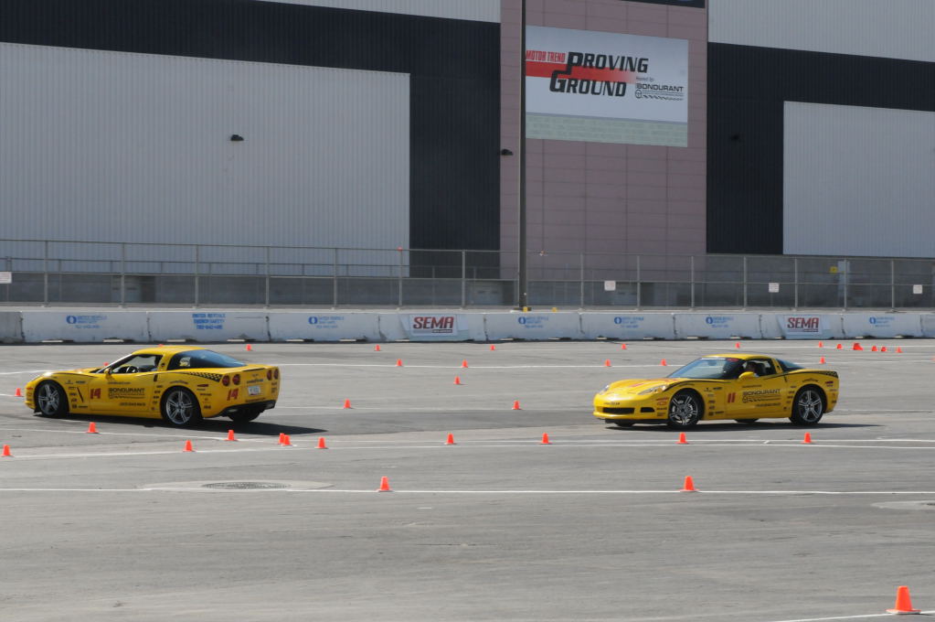 Description: Bob Bondurant instructors take SEMA participants around SEMA MotorTrend Proving Ground in C6 Corvettes Photos from SEMA Convention 2009