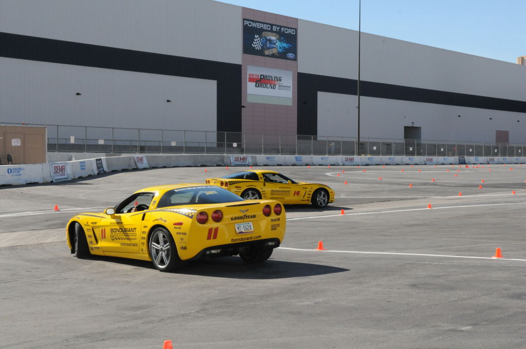 Description: Bob Bondurant instructors take SEMA participants around SEMA MotorTrend Proving Ground in C6 Corvettes Photos from SEMA Convention 2009