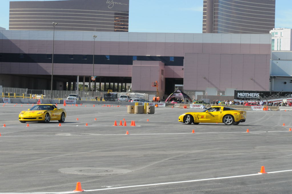 Description: Bob Bondurant instructors take SEMA participants around SEMA MotorTrend Proving Ground in C6 Corvettes Photos from SEMA Convention 2009