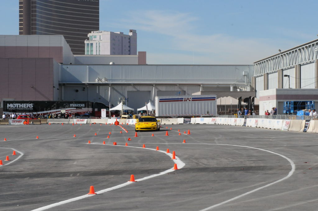 Description: Bob Bondurant instructors take SEMA participants around SEMA MotorTrend Proving Ground in C6 Corvettes Photos from SEMA Convention 2009