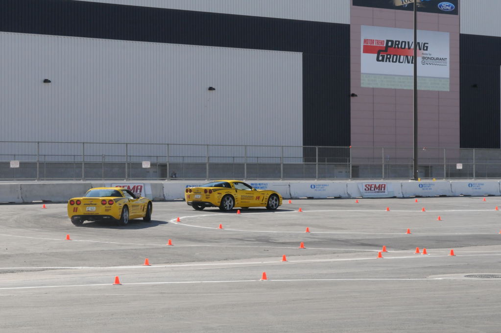 Description: Bob Bondurant instructors take SEMA participants around SEMA MotorTrend Proving Ground in C6 Corvettes Photos from SEMA Convention 2009