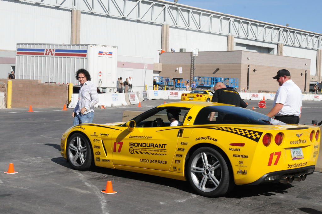 Description: Bob Bondurant instructors take SEMA participants around SEMA MotorTrend Proving Ground in C6 Corvettes Photos from SEMA Convention 2009